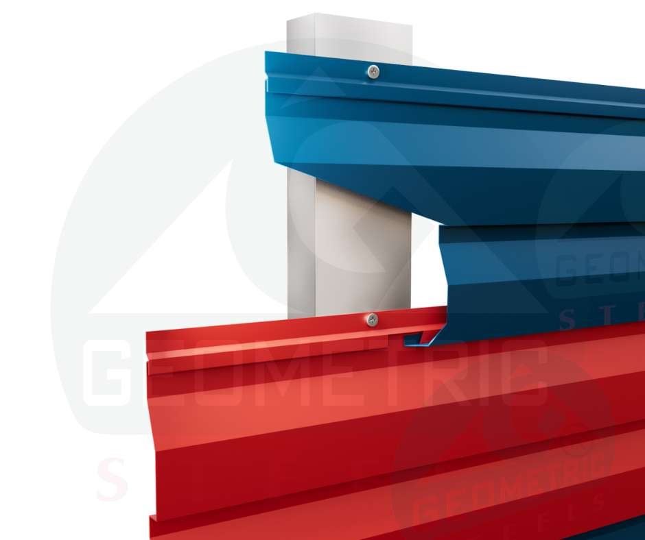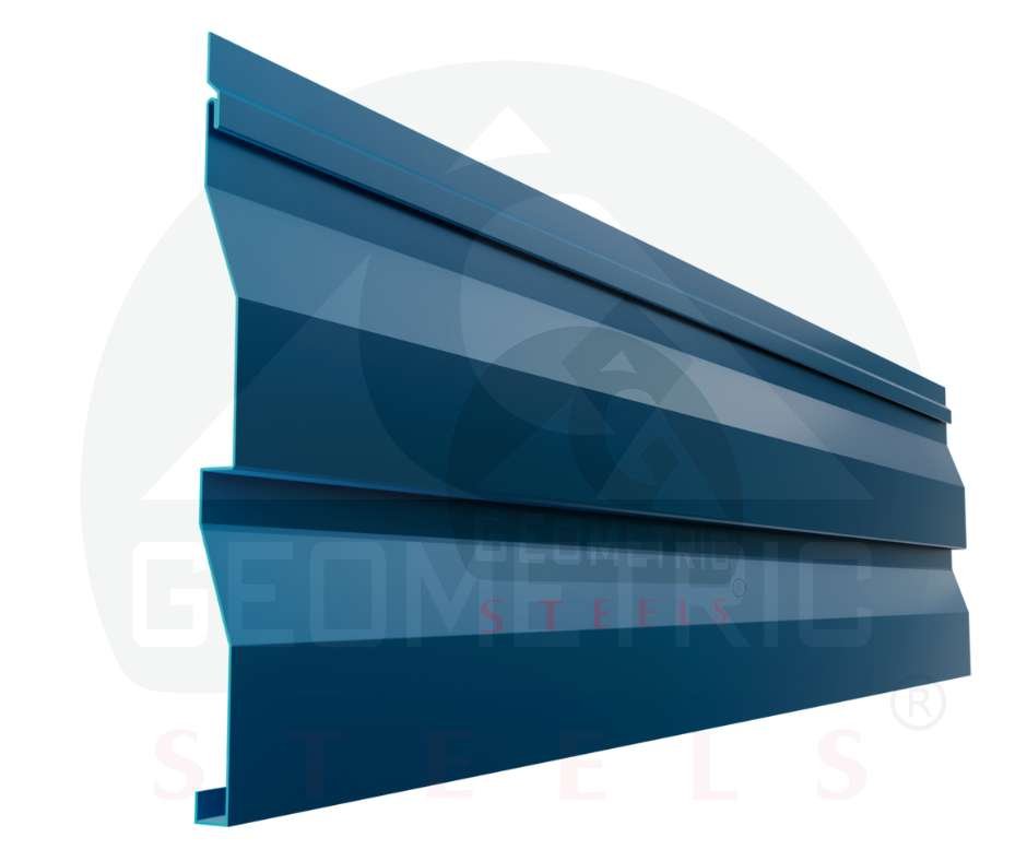 A horizontal metal cladding profile designed for modern architectural applications, offering a sleek and clean appearance with a concealed screw fastening system for improved aesthetics and weatherproof performance.