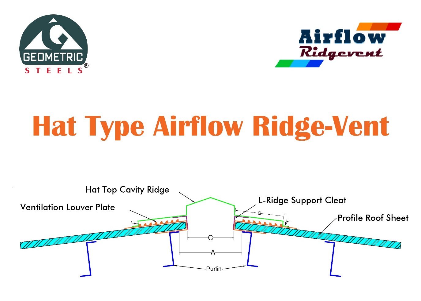 The Hat Top Airflow Ridgevent is an advanced ventilation solution designed for seamless integration into modern and existing roofing systems. Featuring parallel louvers in a distinctive hat-style cavity ridge, this ridge vent is constructed from colour-coated galvanised steel or Galvalume, tailored to customer specifications. Its design ensures compatibility with all roof profiles, making it a versatile and highly effective option for improved natural ventilation. Additionally, the product is maintenance-free, offering a long lifecycle with consistent performance, making it an ideal choice for both new and retrofit applications.