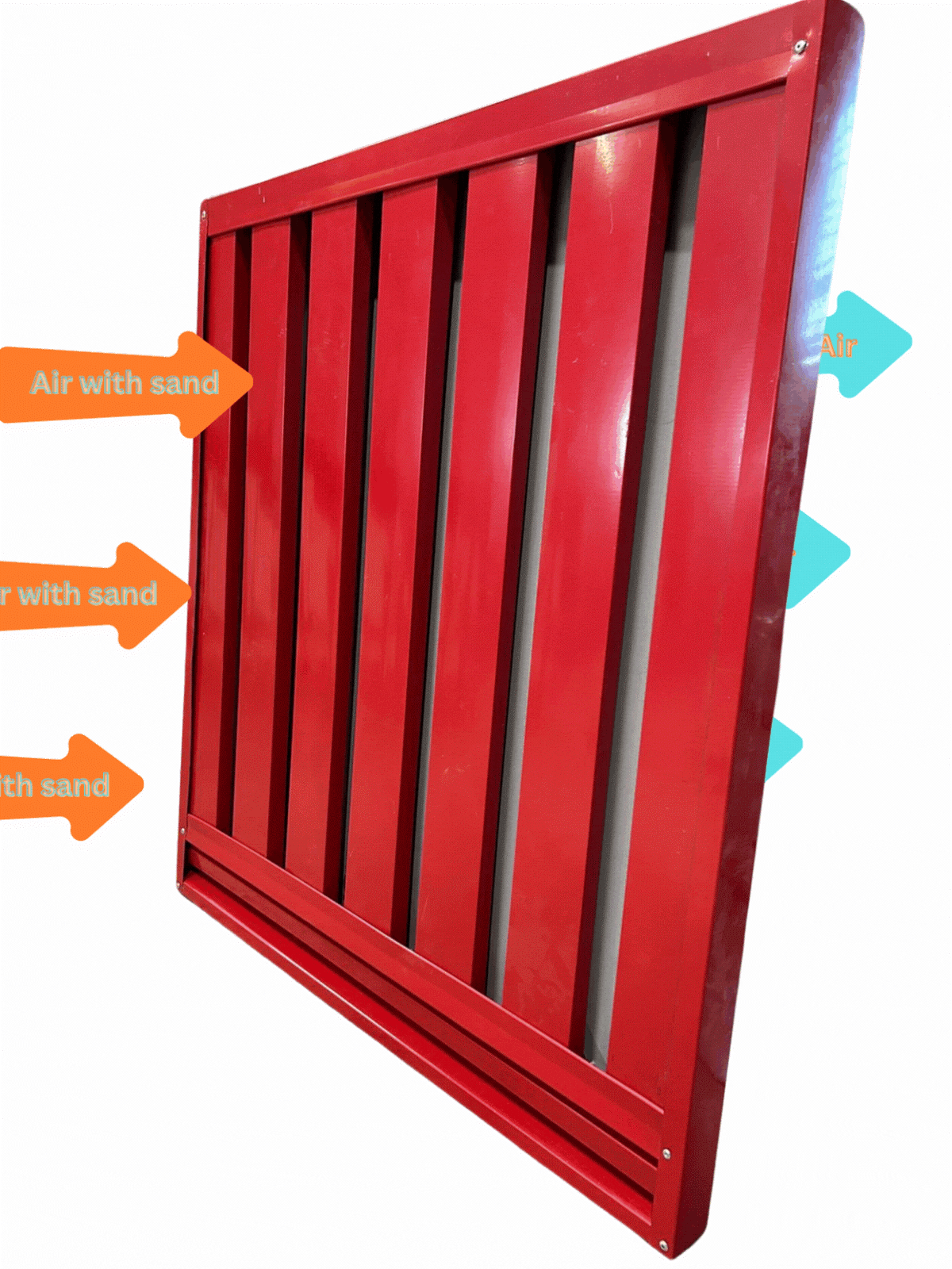 Installed as the first component in air intake systems, Sand Trap Louvers trap large sand and dust particles, protecting equipment, filters, and machinery from damage and clogging. These self-emptying louvers are available in customizable sizes and colours, with maximum dimensions of up to 4500mm in height and length.