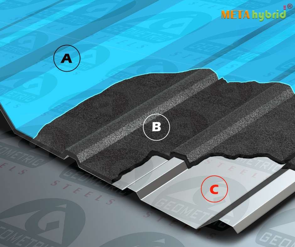 1. Top Layer: Profiled metal sheet (PPGI/GL/PPGL/AL) providing strength and durability.